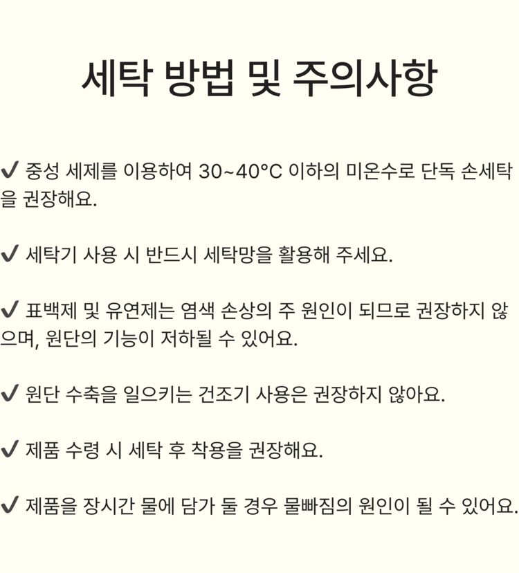 - 상품 하자, 오배송의 경우 수령일로부터 7일 이내 고객센터 접수 후 교환∙반품이 가능합니다. (교환/반품비 무료)